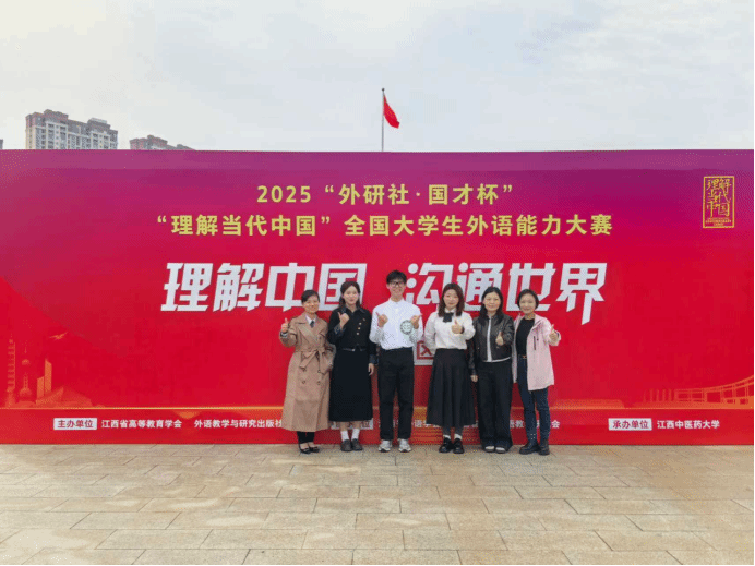 2025年“外研社·国才杯”“理解当代中国”全国老员工外语能力大赛江西赛区英语演讲比赛于11月2日在江西中医药大学隆重举行。本次赛事汇聚了来自南昌大学、江西师范大学、江西中医药大学、江西财经大学等全省三十余所高校的180名选手同台竞技。公司选派的三名同学——23级商务英语3班黄福盛、23级英语2班廖婉瑜、24级计算机科学与技术班闵睿代表学校参赛。经过激烈角逐,黄福盛同学凭借出色表现荣获铜奖。