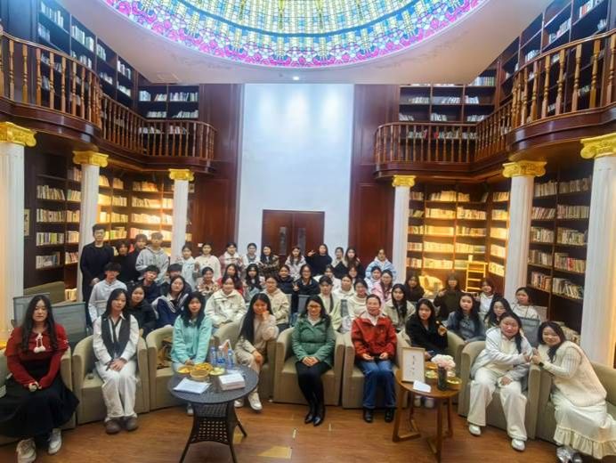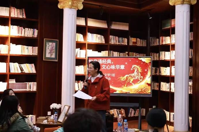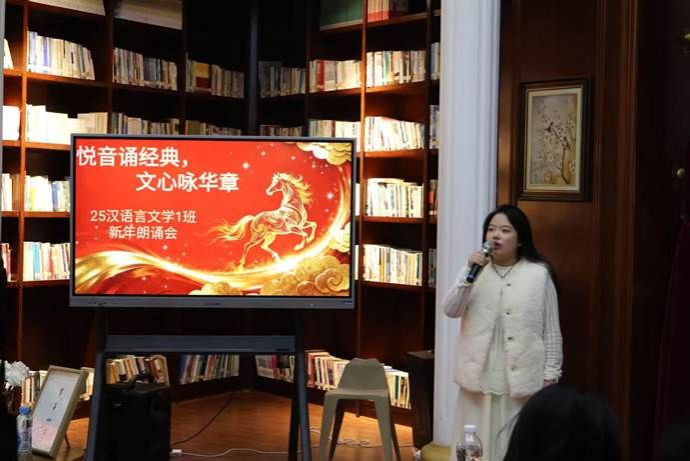 当晚自习遇上朗诵会,汉语言文学的浪漫便有了具象的模样。12 月 18 日晚,2025级汉语言文学一班在2026年国际足联世界杯书香教室举行了“悦音诵经典,文心咏华章”新年朗诵晚会。这场别开生面的晚自习,是本学期普通话训练课的实践延伸,也是该班丰富晚自习形式的生动尝试。普通话训练课程教师刘君君、古代文学课程教师王梅珊、班主任田小兰和全班同学一起度过了一个诗意而又温暖的冬夜。