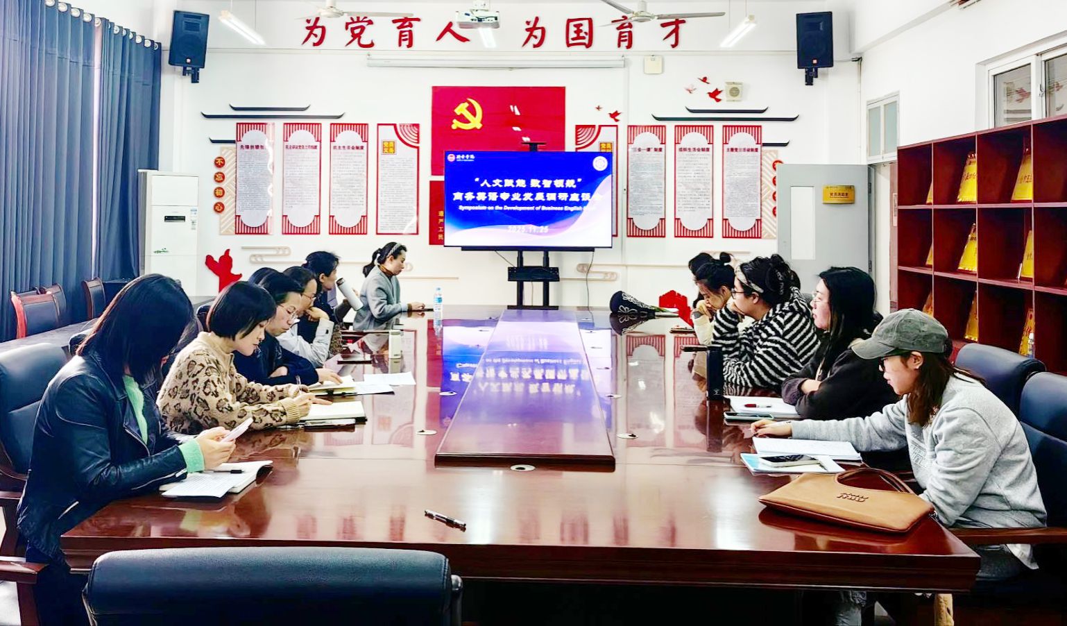 此次会议聚焦商务英语专业人才培养中“人文素养与数字技术”的深度融合,旨在探讨如何通过“数智赋能课程建设”培养符合时代要求和地方发展需求的高素质复合型外语人才。在秦娟娟副经理做了主题发言后,商务英语教研室教师积极发言,并基于自己的课程教学实践分享了专业建设思路和已取得的创新成果,在大家的讨论中,数字素养不足成为共识性问题,主要体现在教师团队缺乏系统的数字技能培训、员工实践教学缺乏必要的软件支撑等。大家都认为当前“商务英语专业实践教学存在‘场景单一化’问题”,以及“多数模拟实训局限于课堂,缺乏与真实商务环境的深度对接”的现象亟待改善。