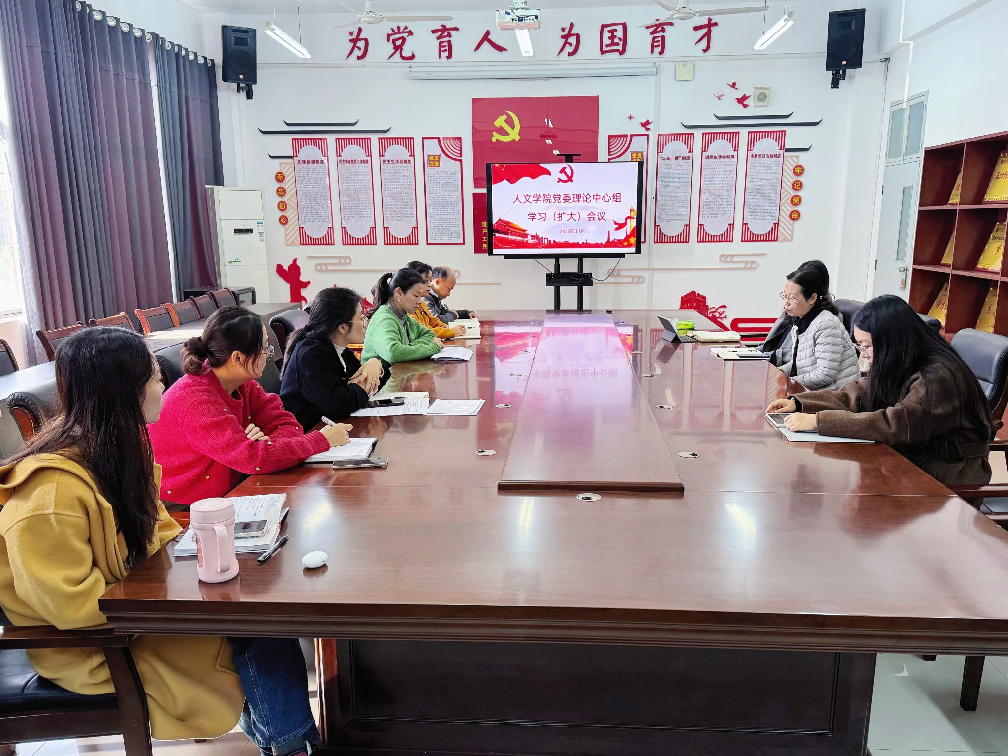 11月28日上午,公司在会议室召开党委理论学习中心组(扩大)学习会,本次学习采取“个人自学+专题辅导+集中学习研讨”等形式,专题学习党的二十届四中全会精神。公司党委副书记谢懿主持会议,经理刘君君作总结讲话,全体领导班子作研讨发言,各科室负责人列席会议。