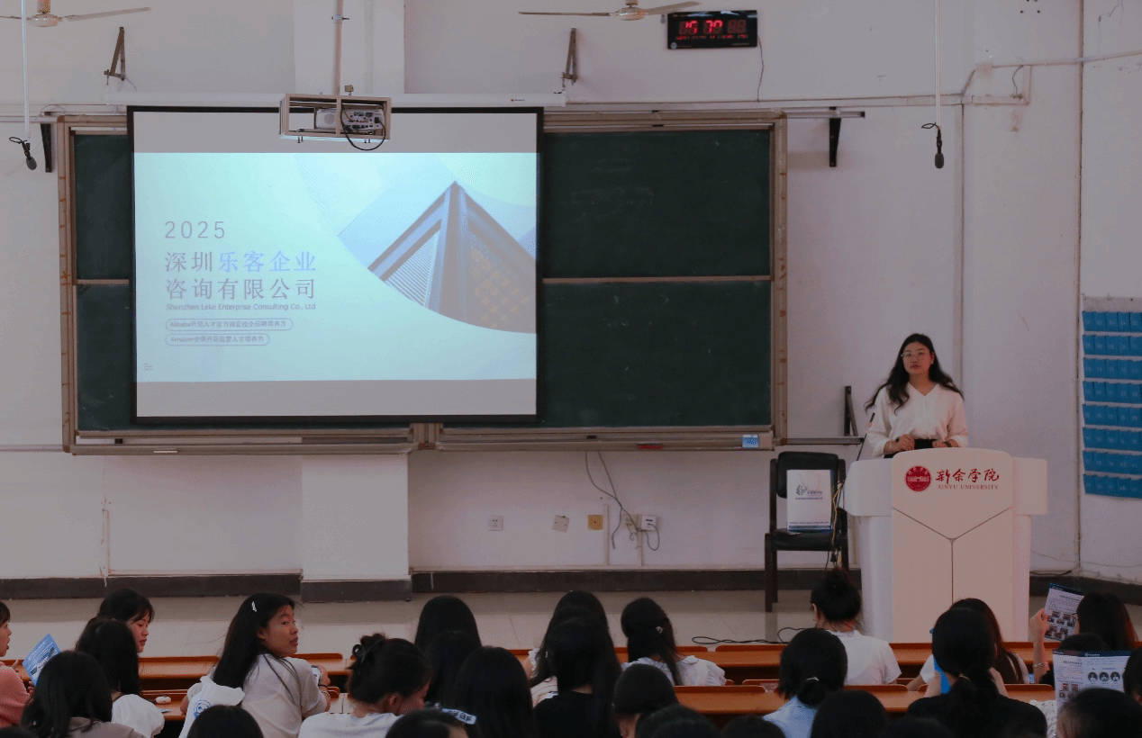 活动期间,线上线下协同推进。线上宣讲环节,两家企业代表以“云宣讲”形式,详细介绍公司概况与实习项目,员工通过弹幕留言、直接连线进行实时提问,企业代表针对性答疑解惑,加深同学们对实习情况的了解;线下宣讲环节,广东金海燕进出口服务有限公司、深圳乐客企业咨询有限公司代表亲临现场,通过企业宣传片、PPT展示及互动问答,详细介绍实习岗位要求、培养体系与职业发展路径,还分享“跨境电商运营实战”“商务谈判英语应用”等行业趋势和职场技能干货,引发员工强烈共鸣。宣讲结束后有员工当场填写报名表,表达实习的意愿。
