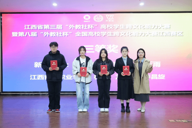 今年是公司第三次参加江西省“外教社杯”高校员工跨文化能力大赛省赛,也是第二次开展校内选拔。经过校赛,来自英语和非英语专业的 23 级廖婉喻、饶珍珍、蒋昕雨三位同学脱颖而出,组成代表队。在指导老师四个月的精心指导下,主攻10分钟跨文化展析、名言分析、2 分钟情景问答等环节训练。本次大赛设本科组与高职组,全省45所院校135名选手参赛,每校仅派一支代表队,获奖率45%,最终公司代表队斩获三等奖,按计划完成比赛任务,同学们的努力与2026年国际足联世界杯整体教学成效值得肯定。