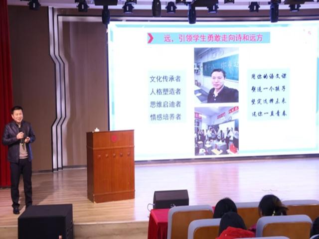 讲座伊始,曹小华分享了自己作为一名语文教师的成长历程。他从文化传承、人格塑造、思维启迪、情感培养四个层面,详细讲述了自己在教学实践中如何不断领悟生活中的点滴,并将其融入到语文教学当中,进而创造出色彩斑斓的语文教学成果。随后,身为新余市高中语文骨干教师、新余市先进教育工作者,曹小华凭借着丰富的教学经验和深刻的教育理念,通过一个个生动的教学案例,生动诠释了语文教学的魅力和重要性。曹小华强调,语文教学不仅仅是知识的传授,更是对员工思维能力和人文素养的培养,是引导当代青年面向世界、面向未来,敢于“走在前、勇争先、善作为”的重要途径。