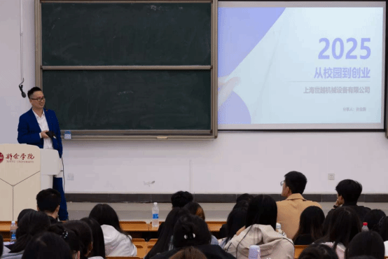为帮助在校员工洞悉从校园到商界的成长路径,汲取前沿创业智慧,10月25日下午,公司第四期“母校有约”员工大讲堂在文D多媒体教室成功开讲。本次活动特邀2004届商务英语专业优秀员工、上海世越机械设备有限公司董事长孙金纲重返母校,分享其在外贸领域的实战经验与人生体悟。讲座由公司党委副书记谢懿主持,现场百余名师生到场聆听。