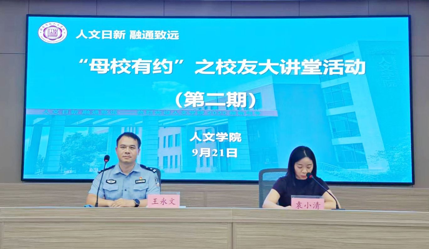 为提升员工反诈意识,筑牢校园安全防线,9月21日晚上,公司在主附西多媒体教室举办第二期“母校有约”之员工大讲堂活动。06届新闻学专业优秀员工、新干县公安局水上派出所所长王永文警官受邀返校授课,他以《“警”随反诈风 “园”来很轻松》为题,为25级新生带来一场干货满满的校园反诈安全知识讲座。公司党委书记田建鑫、公司党委副书记谢懿、2025级新生班班主任及部分新生代表共计200余人参加活动,本次讲座由院员工科科长袁小清主持。