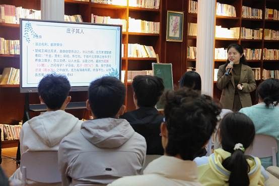 初冬的寒意被教室内的温暖氛围驱散。活动采用别具匠心的圆桌座谈形式,王梅珊博士以亲身经历和生活实例为引,将《庄子》中“成心”“莫若以明”等抽象概念娓娓道来。她幽默风趣的讲述,让两千多年前的哲学思想焕发出新的生命力,引得现场不时响起会心的笑声和热烈的掌声。